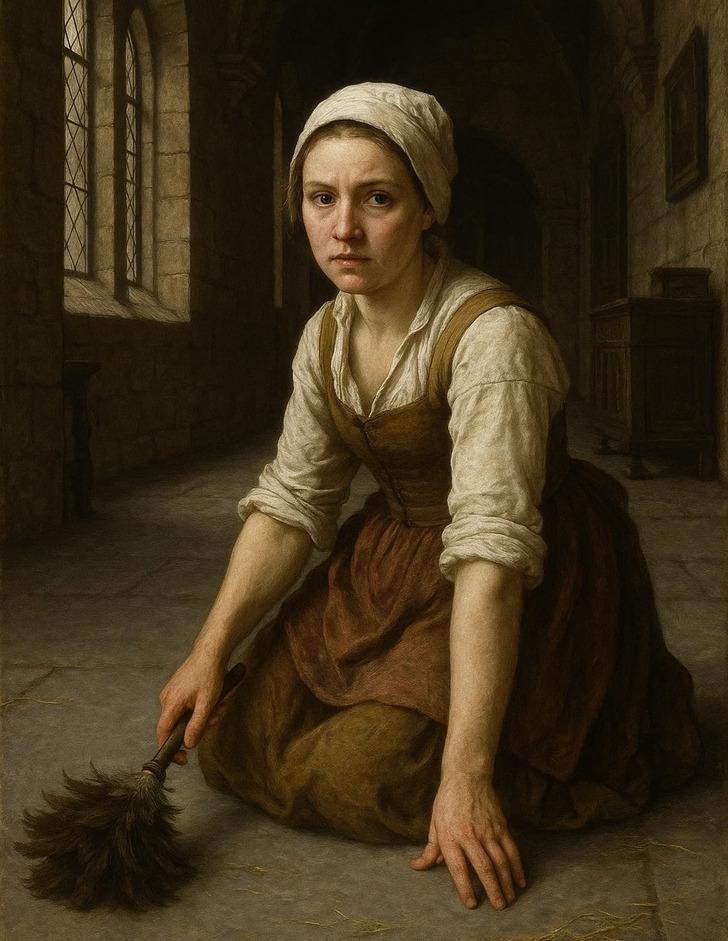 А все потому, что эти полы частенько были земляными. Пол мог быть оштукатуренным или каменным, но в любом случае его устилали камышом и соломой. Весной и летом к ним добавлялись цветы и травы, чтобы замаскировать неприятные запахи. Полы были грязноваты, так как меняли это покрытие довольно редко, сметая старую солому подручными средствами — например, птичьими перьями.
