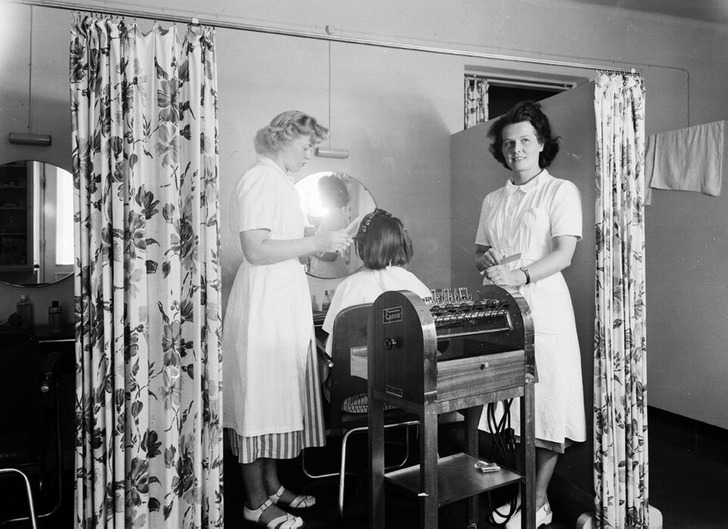 Сейчас феном никого не удивишь. Скорее, могут поразить количество насадок и расчесок с самыми разными названиями. А вот раньше высушить волосы было не так просто. Первые фены были огромными и напоминали скорее пылесосы. Подключали их к какому-нибудь обогревательному элементу. Существовали и специальные расчески для укладки. Например, в своеобразный утюжок заливалась горячая вода и волосы расчесывались, пока вода испарялась. Распространение электричества способствовало появлению новых фенов, не таких опасных. Но первые экземпляры все равно немного удивляли.