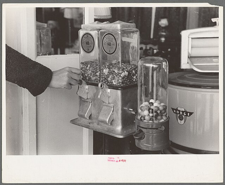 В США такие торговые точки возникли в 1888 году. В них можно было купить жевательную резинку. Через несколько лет родилась идея добавить игровой элемент в конструкцию, что должно было стимулировать продажи.