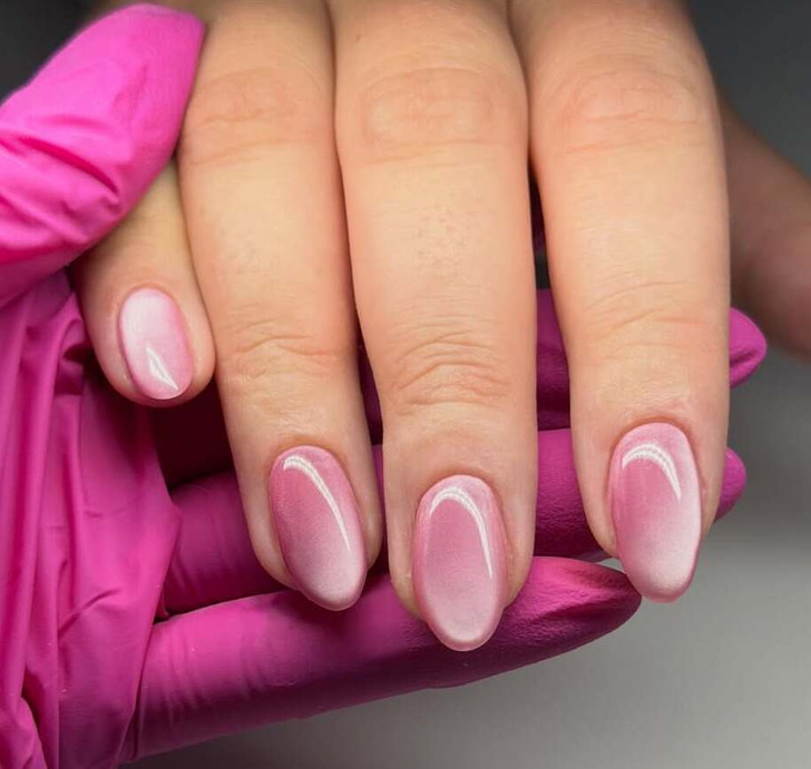 Секрет актуального образа — в создании эффекта бархатного нимба или диагональных переливов. Весь фокус здесь в утонченности подобного дизайна. Выбирайте глубокие оттенки, дымчатый нюд или мерцающую пастель — такие ногти будут менять вид при каждом движении рук, создавая завораживающую 3D-глубину.
