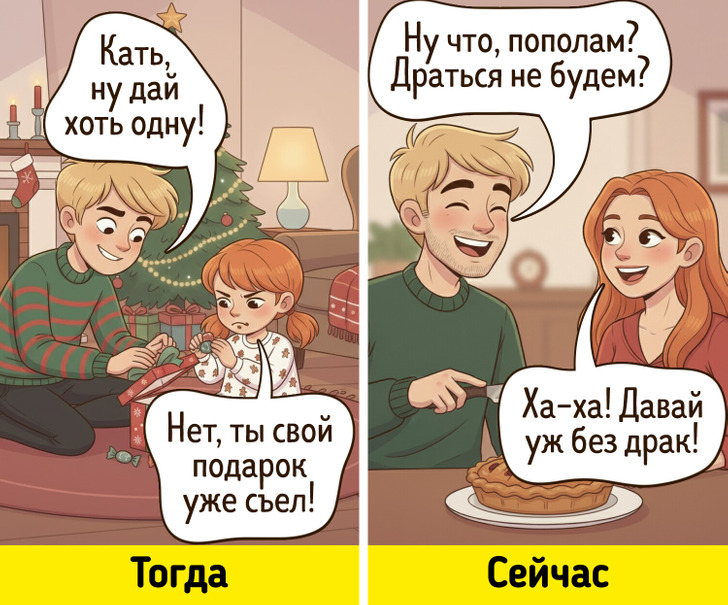 Делить подарки, сладости и игрушки — классика отношений братьев и сестер, но повзрослев, мы учимся уступать и со смехом вспоминаем былое