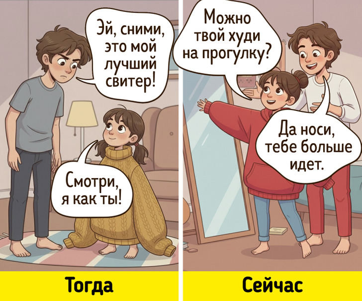 В детстве порой хотелось подражать старшим, а те в ответ не всегда были рады делиться вещами. А сейчас, спустя годы, мы готовы отдать друг другу хоть самое любимое