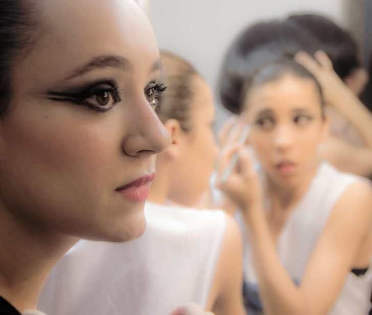 Конечно, сценический макияж должен быть выразительным, но если в процессе выступления косметика начнет стекать с лица вместе со струйками пота, выйдет неловко. Поэтому балерины используют тот профессиональный грим, который подходит их типу кожи, а сверху сбрызгивают его жидкостью на основе розовой воды. Потом остается только просушить лицо феном, и макияж сможет выдержать любые испытания. А розовую воду можно применять и между сценами. Если нанести немного этой жидкости на затылок, балерина сразу почувствует себя бодрее.