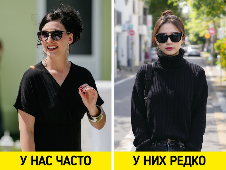 Сами японцы почти не носят темные солнцезащитные очки. Все дело в особенностях их глаз — они менее чувствительны к свету. К этому добавляется и культурный фактор: в Японии темные очки ассоциируются с чем-то криминальным. Поэтому на иностранцев в черных очках могут смотреть косо. Также за темными стеклами не видно выражения глаз собеседника, а зрительный контакт — одна из важных форм невербального общения японцев.