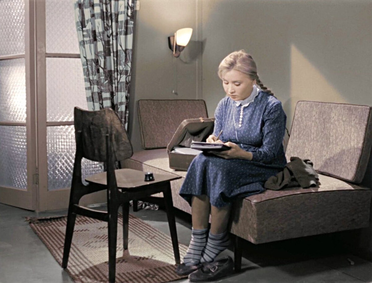 Большинство нарядов героини Натальи Крачковской в фильме выглядят дорого и стильно. Платья с необычными принтами и брючный костюм с удовольствием примерила бы любая модница тех времен. Только один ансамбль выбивается из общего ряда: яркая желтая блузка с цветастыми штанами. Сочетание невольно режет взгляд и, возможно, намекает на не очень стабильное состояние героини и ее последующую госпитализацию.