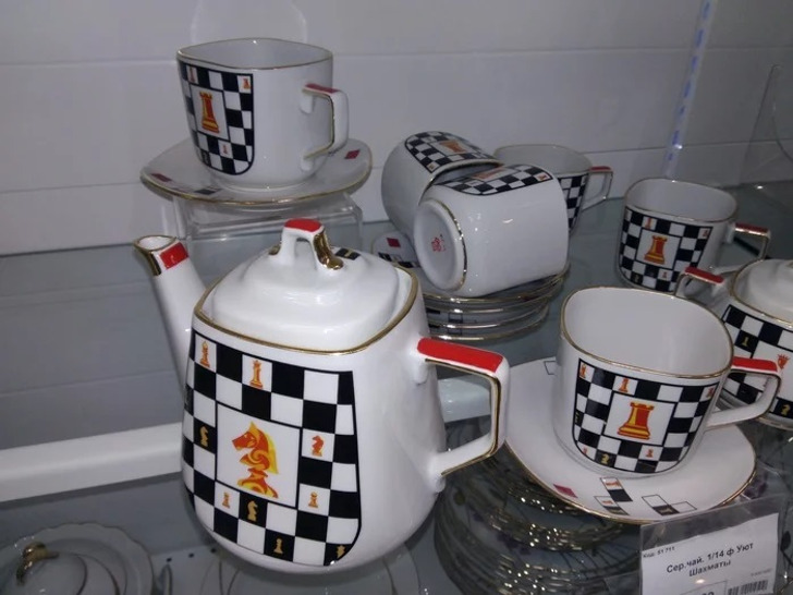 К не менее популярной посуде относится и Дулевский фарфор. Начиналось все еще в первой половине XIX века: обычный крестьянин Терентий Кузнецов открыл маленький заводик в деревушке Дулево. Спустя 20 лет его посуду уже повсюду узнавали, завод даже стал основным поставщиком придворного фарфора. Мастера все время совершенствовали свою технику, что не оставалось незамеченным. До сих пор наши бабушки берегут эту красоту. Кстати, у кого-нибудь еще был вот такой сервиз с шахматами, а? У нас был только чайник, который безвременно разбил кот...