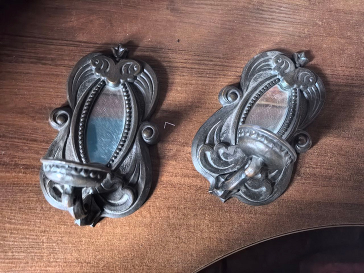 Настенные подсвечники, которые так никто и не повесил, но зато на оборотной стороне была записана дата, когда родители стали в очередь на покупку фортепиано.