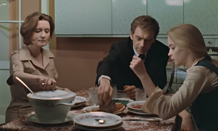 Единственный раз с полной супницей, который я припоминаю, был в конце фильма «Москва слезам не верит». И кажется, что бесполезная, с точки зрения многих, супница в культовом фильме появилась не красоты ради. С ее помощью создатели будто стремились показать, насколько Катерина хотела угодить возлюбленному. Согласитесь, она ведь абсолютная карьеристка без особой любви к быту! А тут протерла от пыли этот эффектный, но доставляющий лишь лишние хлопоты предмет посуды. Остается гадать, суп там был из консервантов или все же нет. Вы как думаете?