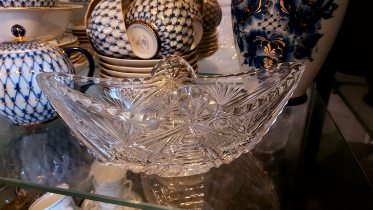 Среди стаканов, графинов и ваз почти в каждом серванте стояла хрустальная ладья. В середине 90-х дедушка туда складывал всякие гаечки и мелкие деньги. За что, конечно, получал нагоняй от бабушки: это же праздничный атрибут! Ну а что оставалось делать, если определиться, что именно класть в эту ладью, до сих пор никто так и не смог? Перед каждым торжеством мама и бабуля спорили, положить туда салат или конфеты? А может, фрукты?