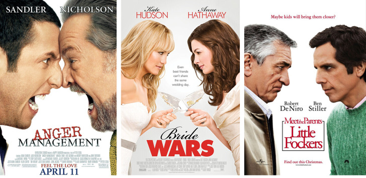 - В коллаже — постеры к фильмам «Управление гневом» (2003); «Война невест» (2009); «Знакомство с Факерами — 2» (2010).