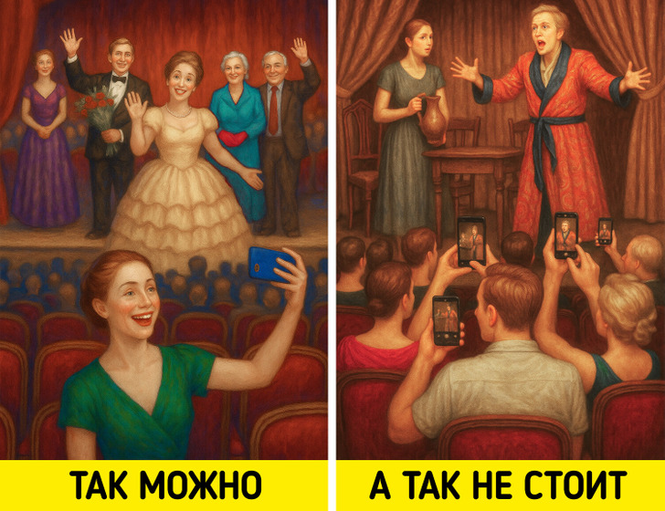 Что-то вы прям поленились... Даже не упомянули, что зрителям не стоит приносить с собой ведра с грязной водой, например. А ведь это главное правило любого театра! 👌🏻