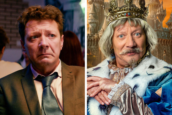 В «Горыныче» у Алексея Филимонова заметный, сказочный образ — здесь вообще много внимания уделили внешнему виду героев. Костюмы и грим явно сделали свою работу.