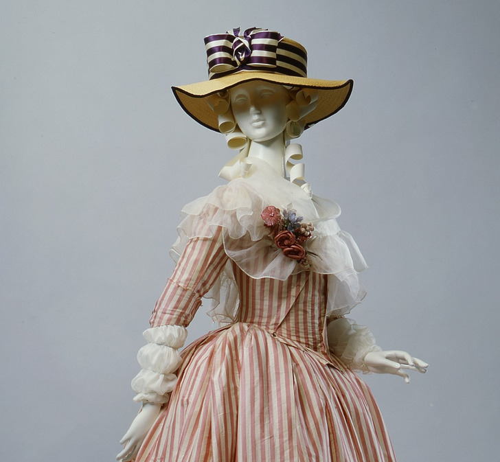 В конце XVIII века дамы носили не цельные наряды, а ансамбль, состоящий из юбки и жакета. Чтобы придать нижней части необходимую форму, дамы привязывали к бедрам подушки. Благодаря этому наряды казались более пышными, а силуэт — изящным. А вот не слишком удобные фижмы, из-за которых платья становились чрезмерно массивными, носили исключительно при дворе.