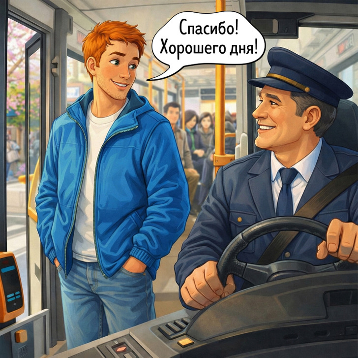 Скорее всего, водитель не ждет от пассажиров благодарности, но любого человека порадует простое «спасибо», особенно если приходится постоянно вести автобус по улицам, забитым автомобилями. Вполне возможно, доброе слово от незнакомца поднимет ему настроение на целый день.