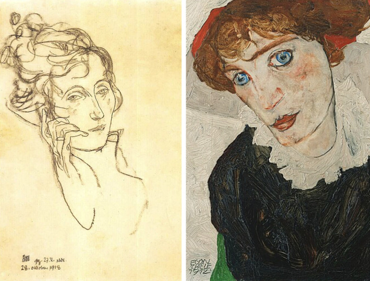 История отношений Шиле оживает в этих портретах: Эдит Хармс, его супруга, и Валери Нойциль, тайная любовь Нажмите на картинку, чтобы узнать ответ