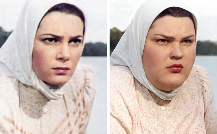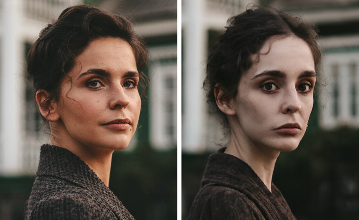 Слева видно, что живой человек с мимикой и хитрецой в глазах, справа - просто красивая куколка