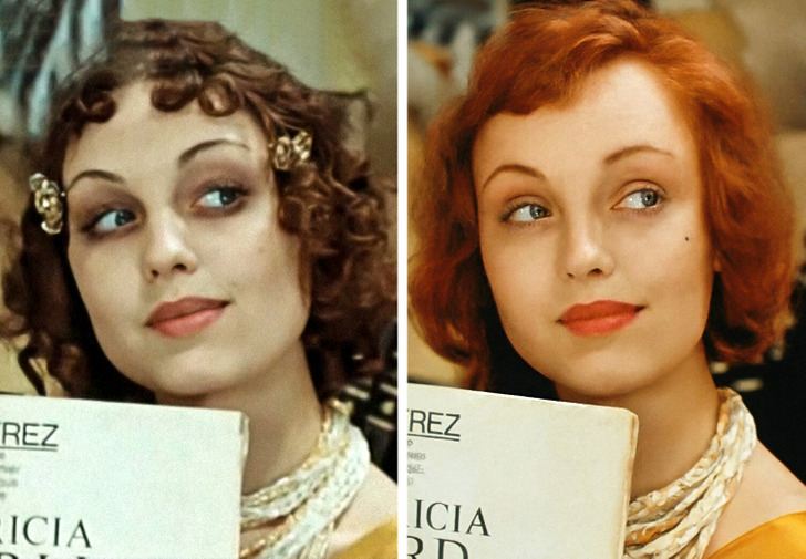 В научно-фантастическом романе Александра Беляева прекрасная девушка Гуттиэре, которую спасает Ихтиандр, покоряет окружающих своей необычайной красотой. Волосы у героини золотистые, а глаза — насыщенно-синего цвета. Учитывая, что действие романа происходит в Аргентине, внешность Гуттиэре, наверное, казалась окружающим необычной.