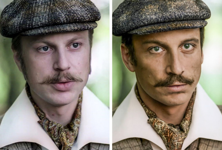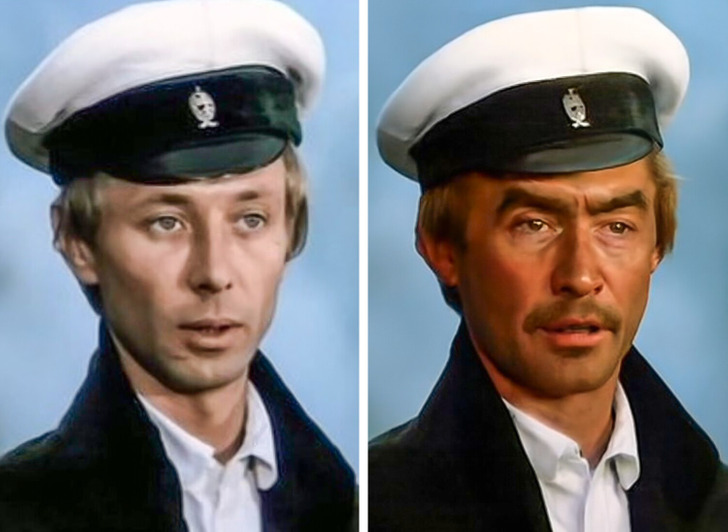 Артистическая внешность.а что,артисты не носили Усов в то время?😁да и костюм актера вполне подходит под описание