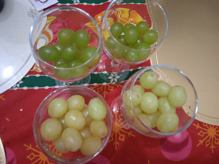 Одна из самых веселых и азартных новогодних традиций существует в Испании и многих странах Латинской Америки. Ровно в полночь 31 декабря, когда часы на главной площади Мадрида начинают отбивать двенадцать ударов, каждый участник застолья должен успеть съесть двенадцать виноградин — по одной на каждый удар. Этот ритуал, известный как «Las Doce Uvas de la Suerte» (Двенадцать виноградин удачи), символически «обеспечивает» удачу на все двенадцать месяцев наступающего года.