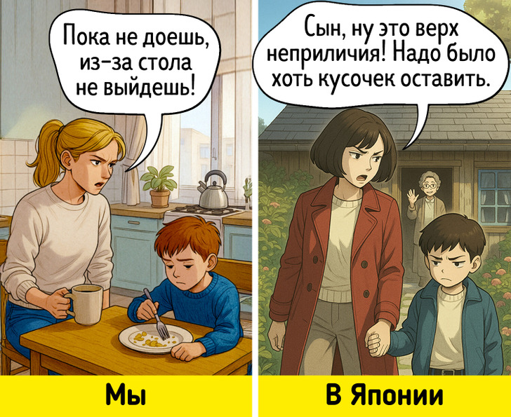 В то время как во многих западных странах чистая тарелка — знак одобрения повару, в Японии это не всегда так. Если вы доели абсолютно все, даже последнее зернышко риса, это может быть истолковано как намек на то, что вам недодали еды и вы не наелись. Вежливым жестом считается оставить небольшой, символический кусочек еды. Это показывает, что вы сыты и хозяин был настолько щедр, что вы не смогли справиться с угощением.