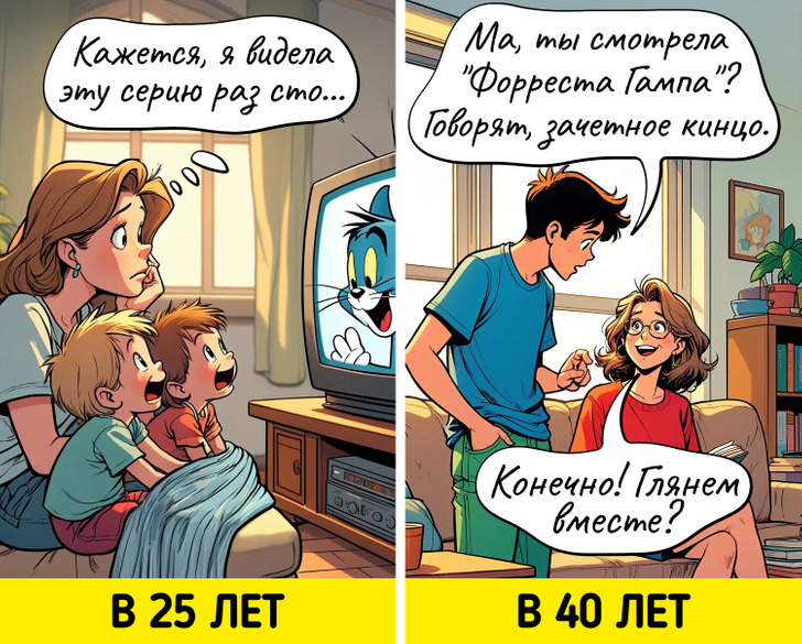 Круто, когда с детьми можно обсудить не только последнюю серию мультика, но и свои любимые фильмы и книги, да и просто поговорить о жизни. Но и это тоже ближе к 40