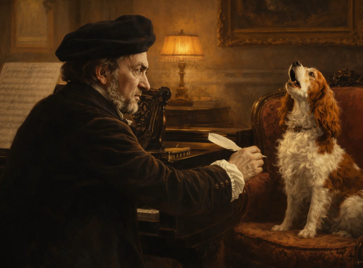 Рихард Вагнер во время работы сажал рядом в кресло своего любимого спаниеля по кличке Пепс. И это был не просто милый ритуал. Композитор всерьез считал пса своим главным критиком и музыкальным цензором. Стоило Вагнеру сыграть какой-то особенно тяжелый или неестественный пассаж, как Пепс тут же начинал выть или беспокойно ерзать. И Вагнер, полагаясь на чуткий собачий слух, переписывал кусок заново — до тех пор, пока собака не замолкала и не успокаивалась. Таким неожиданным образом спаниель Пепс стал соавтором многих великих произведений Вагнера. Кто знает, насколько иначе звучала бы музыка великого немца, если бы однажды рядом с ним не оказалось этого очень музыкального и честного спаниеля.