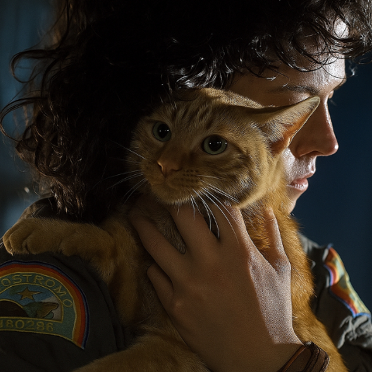 В культовом «Чужом» Ридли Скотта один из самых запоминающихся кадров получился таким убедительным благодаря рыжему коту. В сцене, где механик Бретт ищет пропавшего питомца и за его спиной появляется Чужой, создателям нужна была выразительная кошачья реакция — мгновенный переход от спокойствия к защитной позе. Решение нашлось простое: перед котом поставили непрозрачный экран, за которым спокойно сидела немецкая овчарка. Когда экран убрали, кот увидел собаку, мгновенно зашипел и выгнул спину — совершенно естественно, без дублей и дрессировки. И эта неподдельная реакция оказалась эмоциональным камертоном для одного из самых запоминающихся эпизодов фильма.