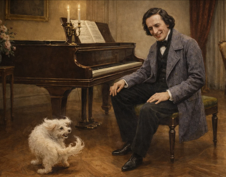 Считается, что именно этот пес вдохновил композитора на один из самых известных его вальсов — Op. 64 № 1 ре-бемоль мажор, который мы знаем как «Минутку». Изначально произведение называли «Вальс маленькой собачки»: по распространенной версии, Шопена позабавил Маркиз, увлеченно гонявшийся за собственным хвостом. Легкая, стремительная мелодия действительно напоминает это кружение — игривое, почти вихревое. Так что, каждый раз, когда кто-то играет эти искрящиеся ноты, где-то в вечности маленький песик все еще радостно ловит свой хвостик.