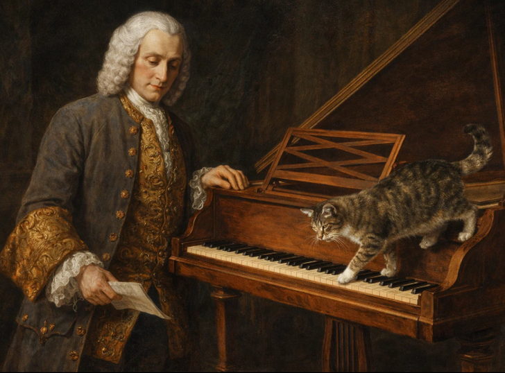 Соната соль минор Доменико Скарлатти (K. 30) по праву считается жемчужиной клавирной музыки. Существует легенда, согласно которой кошка композитора по имени Пульчинелла однажды прогулялась по клавесину, выдав странную, скачущую последовательность звуков, которая якобы зацепила слух Скарлатти и легла в основу темы. Сама музыка будто подыгрывает этой истории: резкие, «прыгающие» интервалы в начале и правда напоминают беспорядочные кошачьи шаги по клавишам. Неудивительно, что в XIX веке за пьесой закрепилось прозвище «Кошачья фуга», хотя ни фугой в строгом смысле, ни «кошачьей» по авторскому замыслу она не была. И все же этот случай, реальный или придуманный, — редкий пример того, как кошка сумела войти в музыкальную мифологию и остаться там навсегда.