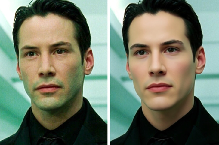 В фильме мы даже видим паспорт Нео — ему 28 лет. А Киану Ривзу на момент выхода фильма было 35. Разница вроде бы небольшая, но благодаря ей герой выглядит чуть более уставшим от жизни, и поэтому его сомнения и поиски правды кажутся особенно правдоподобными.