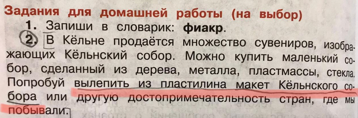 Порой в школе или детском саду задают такие домашние задания, что голову над ними приходится ломать всей семье. А иногда и не ломать — а тихонько смеяться в уголке над результатом. Впрочем, бывает и третий вариант: искренне гордиться тем, какой самостоятельный и рукодельный у тебя сын или дочь. Мы собрали несколько фото и историй от людей, которые не понаслышке знают, как это, в 22:00 услышать: «Мама, папа, мне сказали завтра принести в школу...»