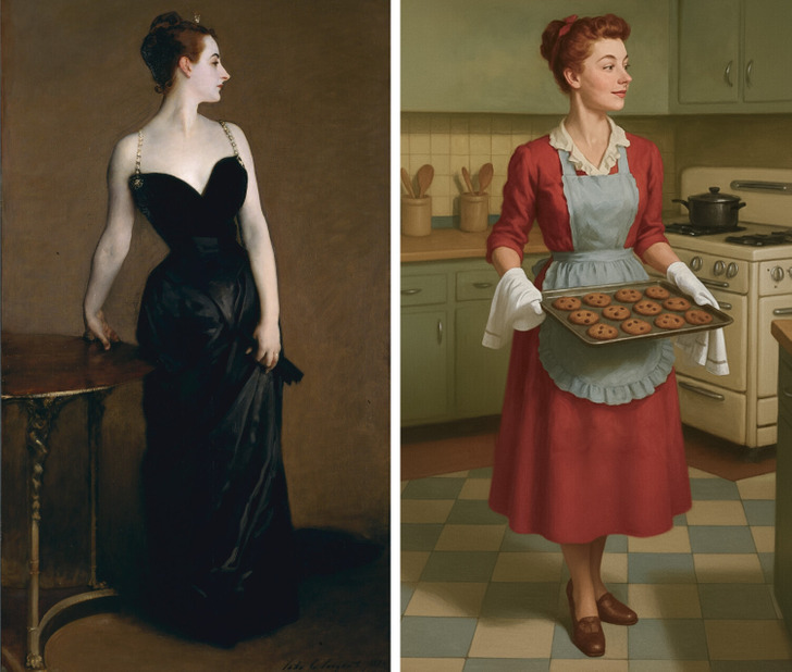 А вы когда-нибудь задумывались, как бы изменились герои широко известных картин, если перенести их в другую эпоху? Попробуйте представить себе даму с портрета времен Ренессанса в стиле «ревущих 20-х» прошлого века или строгого дворянина с акварели времен Джейн Остин в джинсовой куртке и кедах. А можете и не представлять, ведь мы уже это сделали за вас, и обнаружили, что такие перетасовки с эпохами порой позволяют взглянуть на хорошо знакомые полотна совсем по-новому.