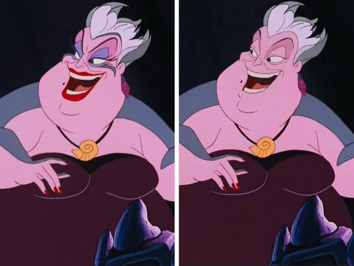 Без своей фирменной маски роковой женщины Урсула выглядит как строгая, но справедливая тетушка, которая ворчит на молодежь больше по привычке, чем по злобе. Ее взгляд даже на капельку не выглядит злым.