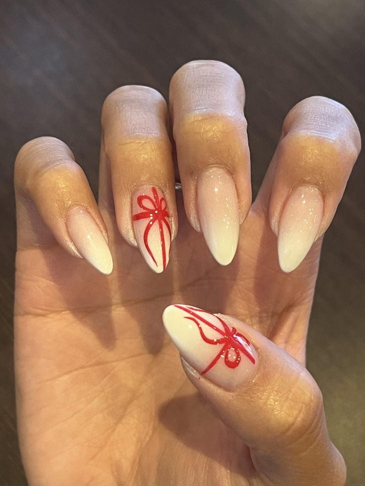 Дизайны с бантиками также пользуются большой популярностью. Эксперты в модном журнале Parade рассказывают, что такие элементы будут гармонично смотреться как в классической красно-белой гамме, так и в нежной розовой. Только посмотрите, это же абсолютный восторг!