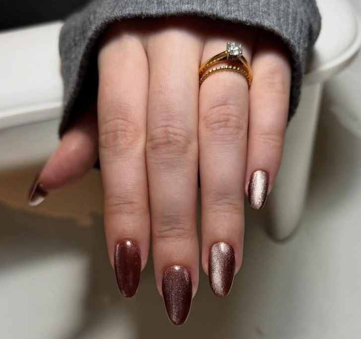 Мастера маникюра отмечают, что правило «только золото или только серебро» устарело. Тренд на смешанный металлик предполагает сочетание золотого, серебряного и даже медного хрома в одном маникюре. Это невероятно модно и актуально.