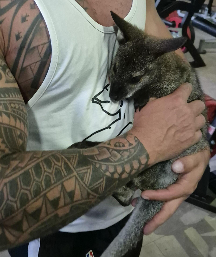 «Этот парень взял в спортзал кустарникового валлаби — один из самых маленьких видов кенгуру»