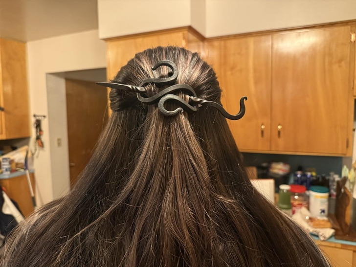«Мой муж сегодня сделал эту заколку для меня. Как будто это ничего не стоит. Я в восторге».