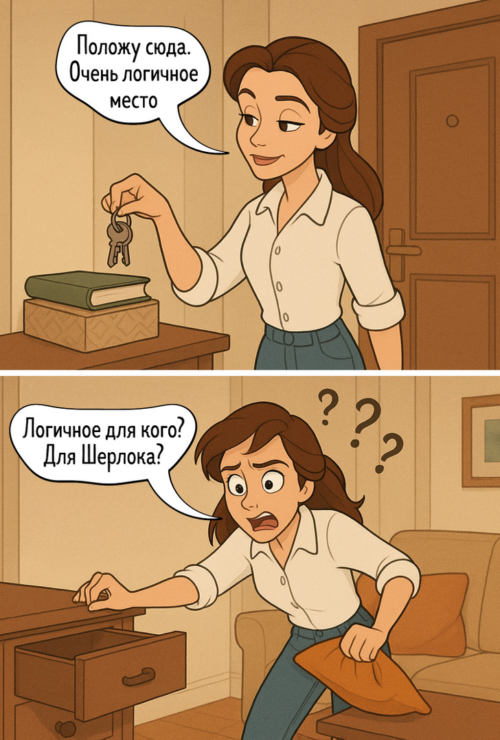8. Иногда мы разбираем квартиру, ища место, которое наше прошлое, гениальное «Я» сочло идеальным. Наша взрослая логика — это самая большая загадка Вселенной