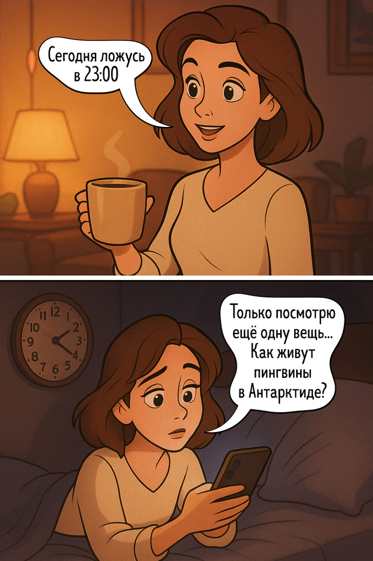 9. Когда ты работаешь мамой, женой и боссом одновременно, единственный способ побыть «просто собой» — это украсть кусочек ночи. Да, это скроллинг, но это мой скроллинг! И никакой вины