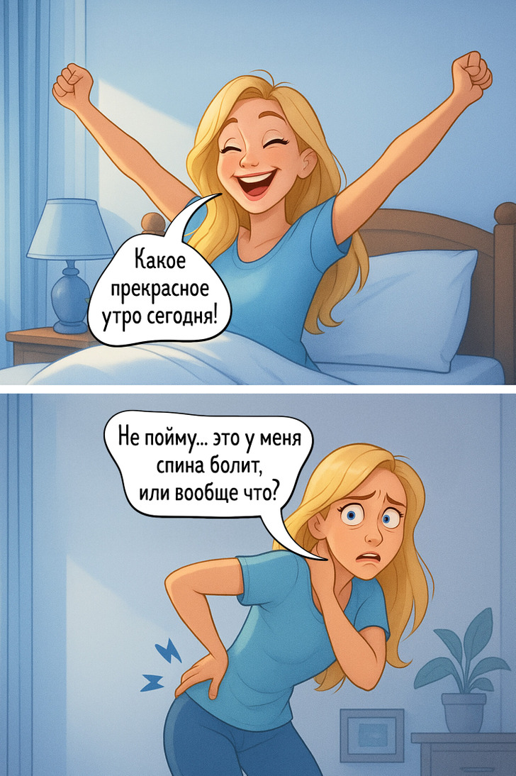 6. Однажды мы все-таки рано встаем: бодрые, решительные, полные сил. И тут же чувствуем, что что-то болит. Что-то странное и неопределенное.