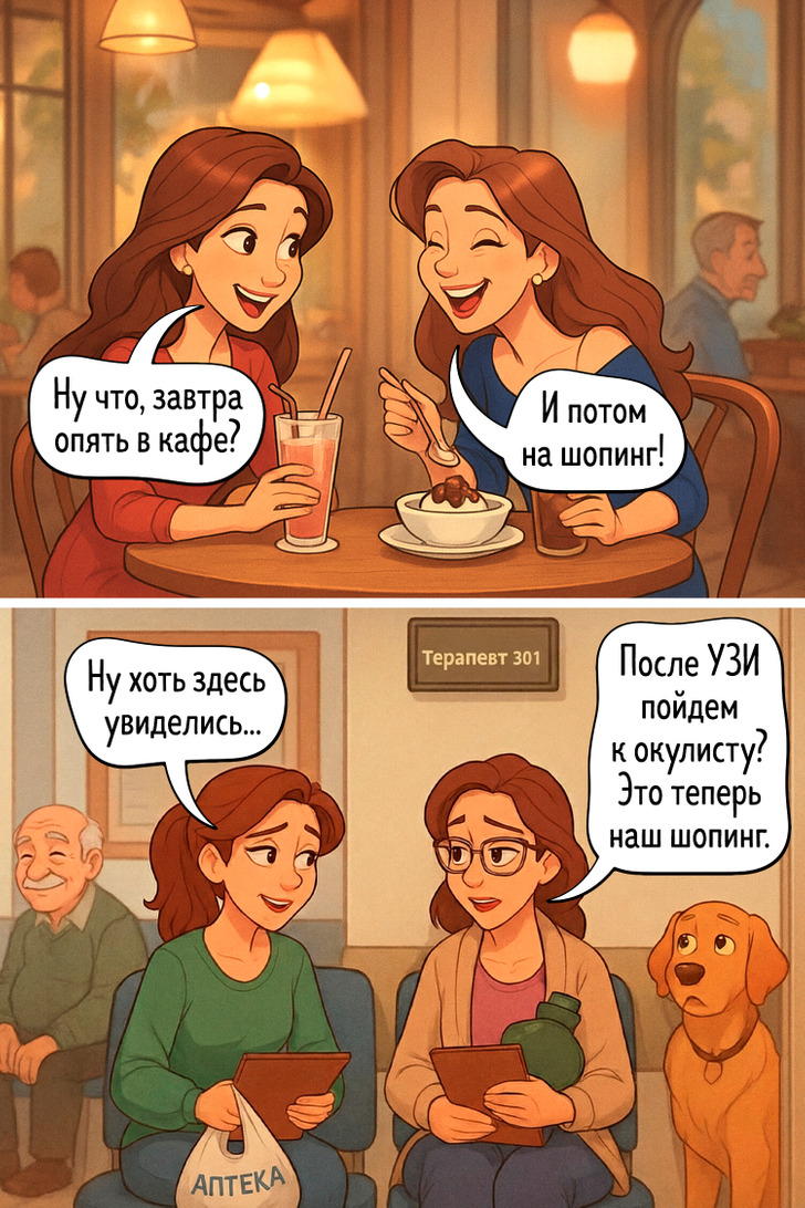 13. А встречи с подругой стали совпадать с посещениями к врачам. Ну зато удается увидеться и поболтать.