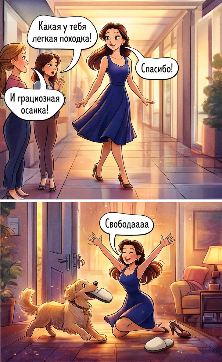 Мы собрали 14 комиксов, которые наглядно показывают, как этот квест выглядит изнутри: с юмором, сарказмом и глубоким пониманием того, что за идеальным фасадом скрывается женщина, которая просто хочет снять бюстгальтер, туфли на высоком каблуке и съесть пиццу.