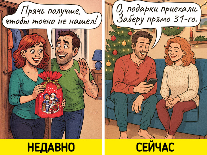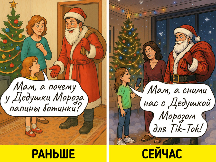 14 легких комиксов о том, как поменялись праздничные традиции за последние 20 лет