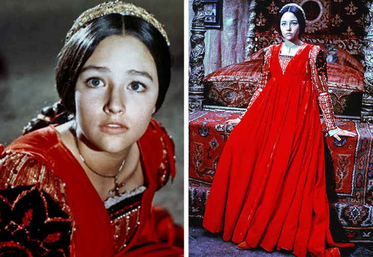 Платье Джульетты, как и все костюмы в этом фильме, полностью соответствует историческому времени — стилю XV века. Для одежд рода Капулетти, к которому относится Джульетта, художник по костюмам выбрал багряный оттенок красного, а для клана Монтекки — сдержанный синий.