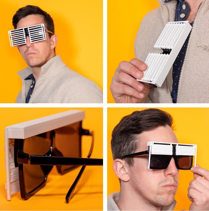 «Обожаю придумывать всякие бесполезные вещички ради забавы. Поэтому вот полюбуйтесь на шторки для очков»