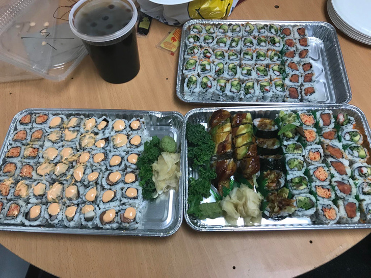«Я порекомендовал своему начальнику заказать суши для пятерых человек на обед, и он согласился!»