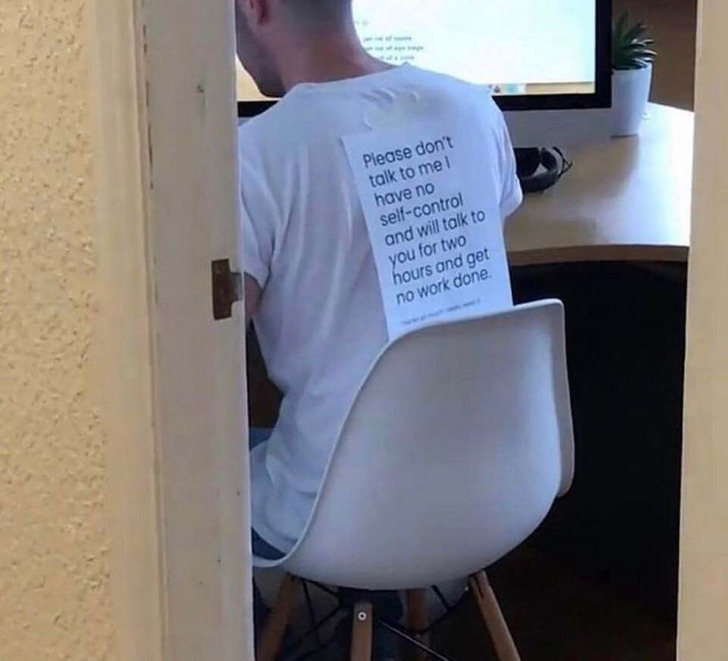 «Пожалуйста, не разговаривайте со мной. Я не контролирую себя, буду болтать с вами 2 часа и не успею сделать свою работу».