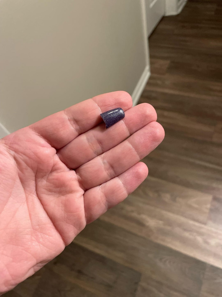 «Такая вот находочка. Это явно не мое. Гостей с накладными ногтями у меня также не было. Живу в этой квартире уже полгода»
