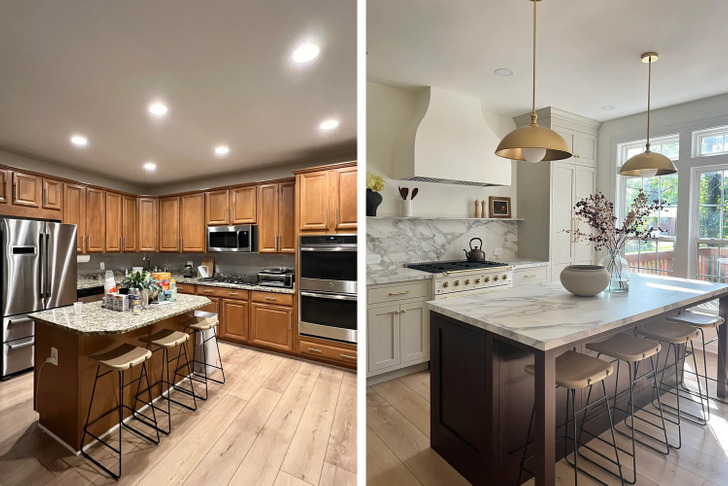 Какая кухня пришлась вам по вкусу? Поделитесь своим мнением с нами. А если вам нужны еще переделки, чтобы вдохновить вас на ремонт в собственном жилище, зайдите сюда.