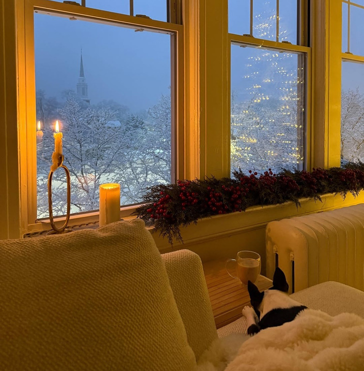 - Так уютно! Мне так нравится отражение в окне — кажется, что гирлянды висят и на деревьях за окном! © chrysta00 / Reddit